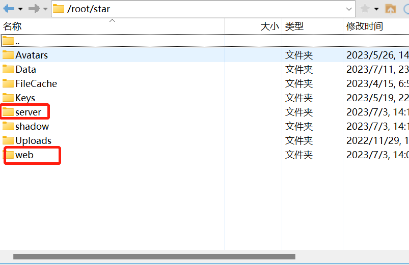 - StarServer.zip、StarWeb.zip压缩包放在当前Agent.dll 相对目录../star/server,../star/web 当中(如下图),注意:压缩文件中没有二级文件夹。