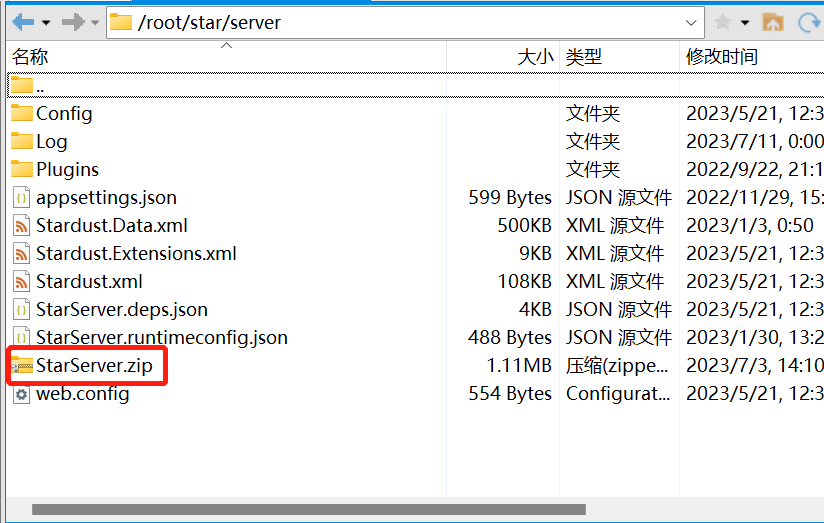 SSH登录Linux服务器,把Star.zip上传后解压缩到应用目录,执行命令: