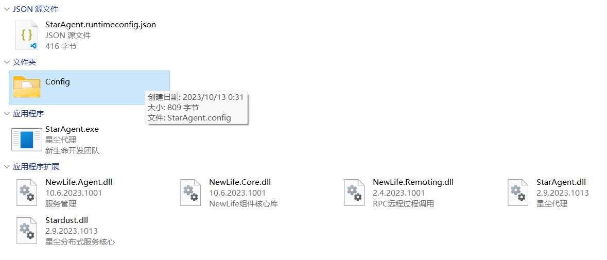 web是星尘控制台StarWeb,这里以StarWeb.zip形式存在,这是StarAgent特别支持的发布形式,也可以解压缩出来,然后修改agent/Config/StarAgent.config。