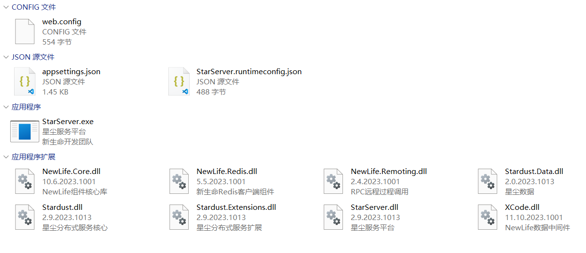 server是星尘服务StarServer,其中web.config用于IIS。