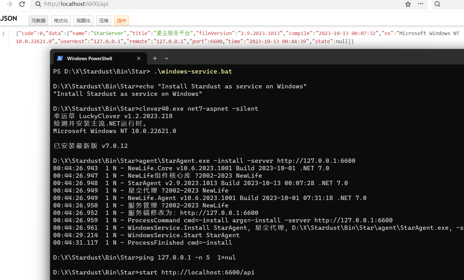 - 最后启动StarAgent.exe/StarAgent.dll后程序会自动拉起StarWeb和StarServer两个服务。