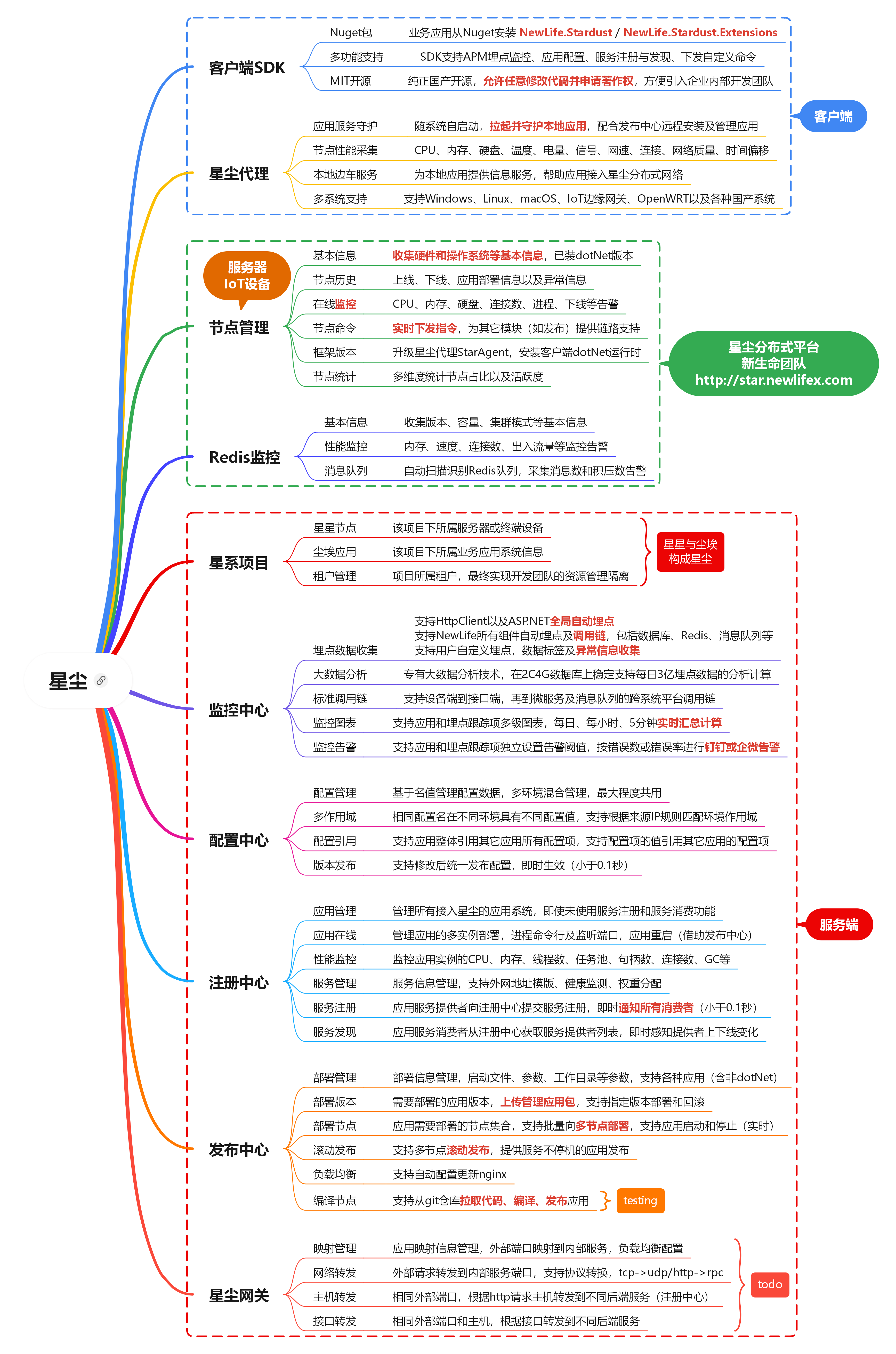 星尘,分布式服务平台,提供平台管理、星尘代理、节点管理、注册中心、配置中心、发布中心、监控中心、星尘网关等子系统。