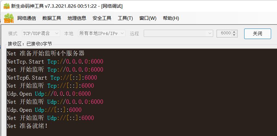 Console.ReadLine();打开码神工具,下载地址 http://x.newlifex.com/XCoder_Install.exe 。使用网络调试工具,监听6000端口。