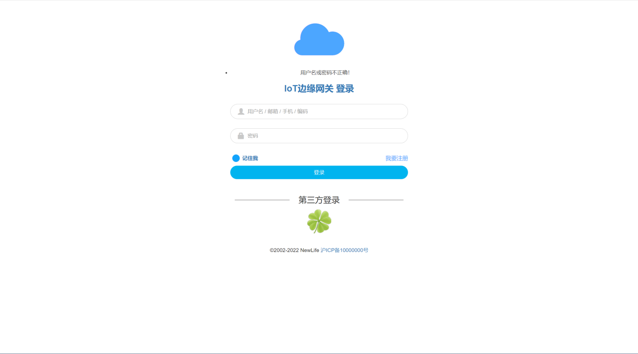 帐号密码(Password)模式:在输入的帐号不匹配的时候会提示用户名或密码不正确!(图2)