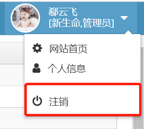 点击系统右边上角图标(图8),下拉菜单中注销菜单(图9)。