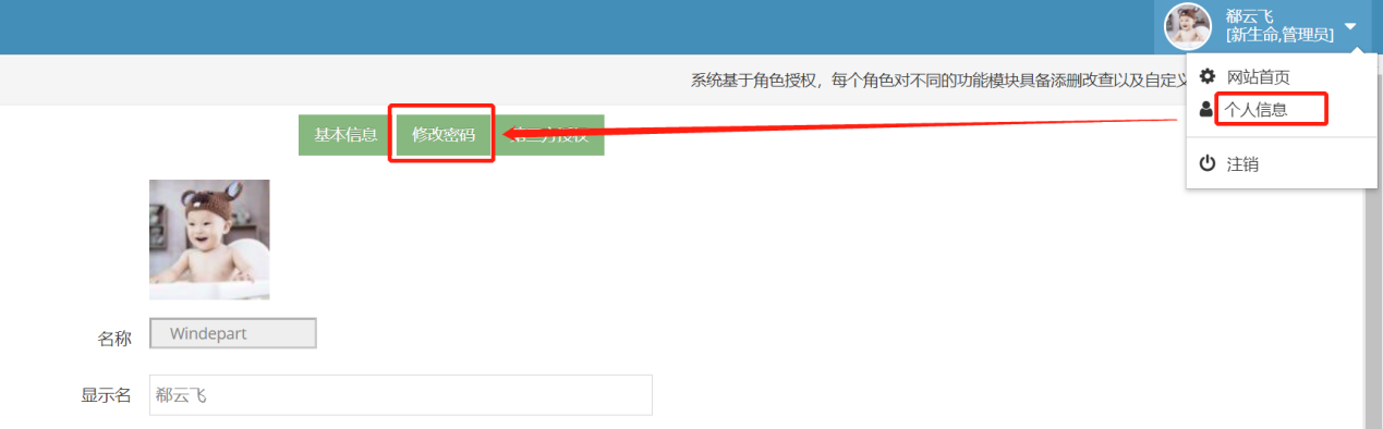 - 修改密码:右上角图标 - 个人信息 - 修改密码