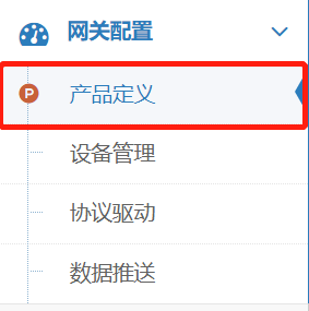 点击 网关配置 - 产品定义菜单(图22),进入产品定义列表页面(图23)。