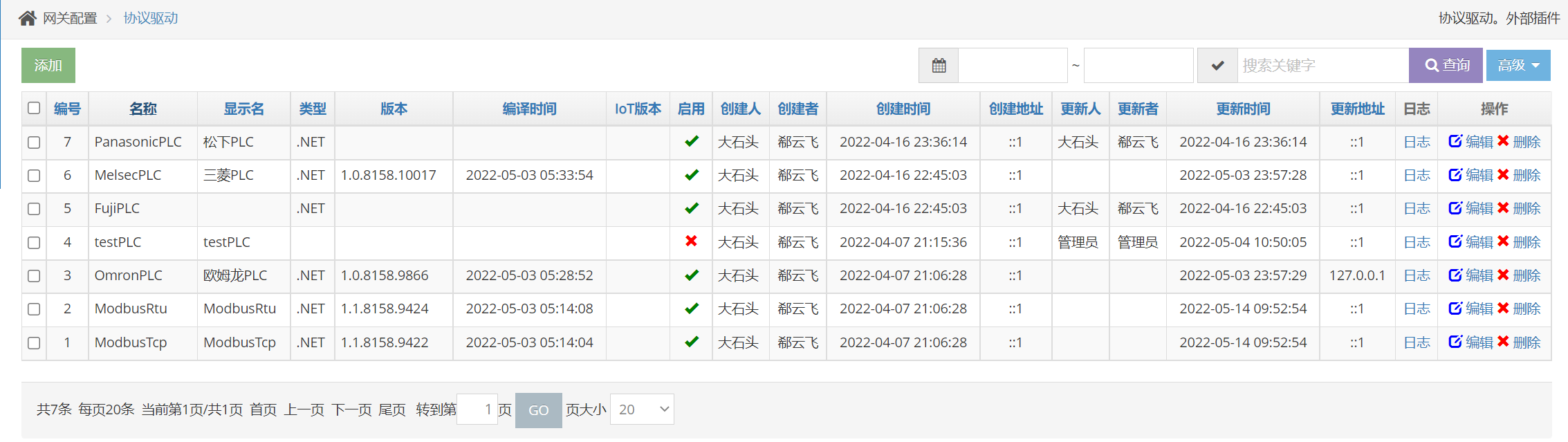 - 协议:标识当前产品使用的那种硬件对接协议,数据来源于“协议驱动”配置中的信息。