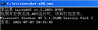 基于net9-aot独立发布,仅输出程序集信息。以下测试表中的AOT项,如果不支持AOT版幸运草(含网络功能),仅支持幸运AOT(仅输出文本信息),则标记为“支持。简易”。