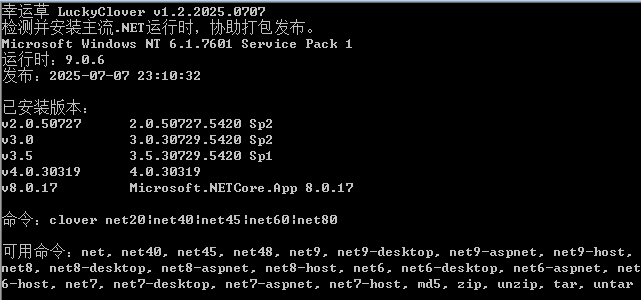 .NET版幸运草依赖.NET2.0运行时,支持检测或安装所有版本.NET运行时。.NET版幸运草同时作为检测.NET运行时的条件,发布有.NET2.0/.NET4.0/.NET4.5/.NET6.0/.NET8.0等多个版本。