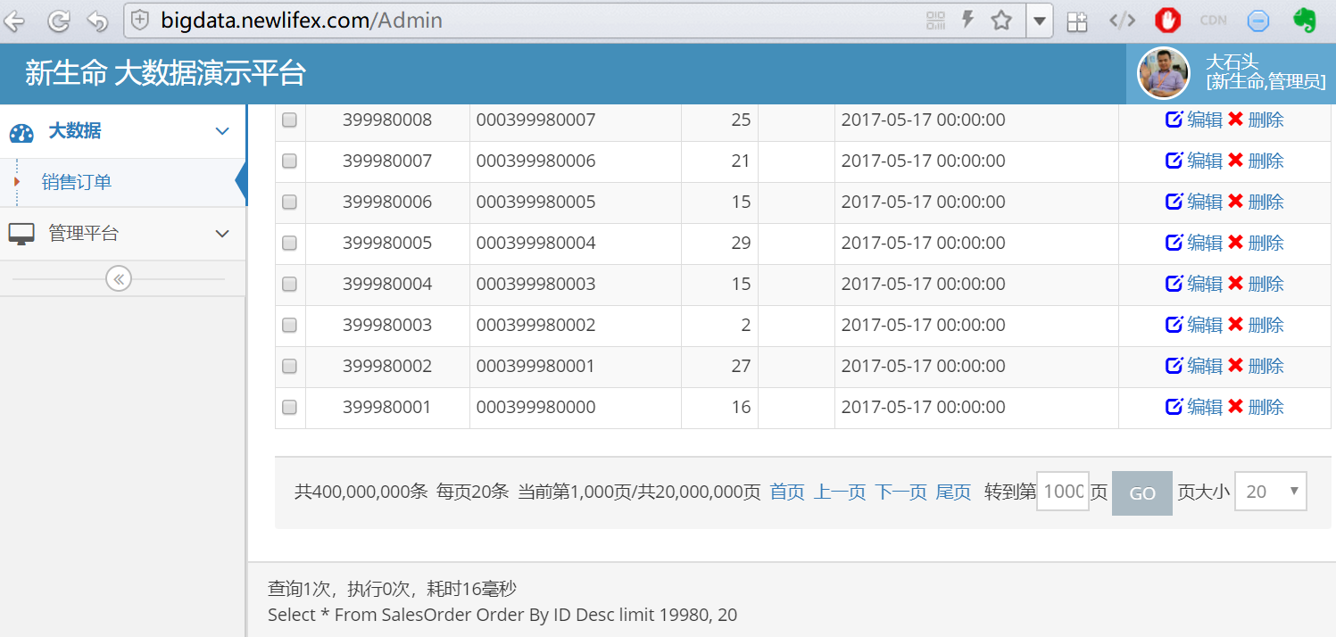 先来看看“大数据演示平台”:http://bigdata.newlifex.com