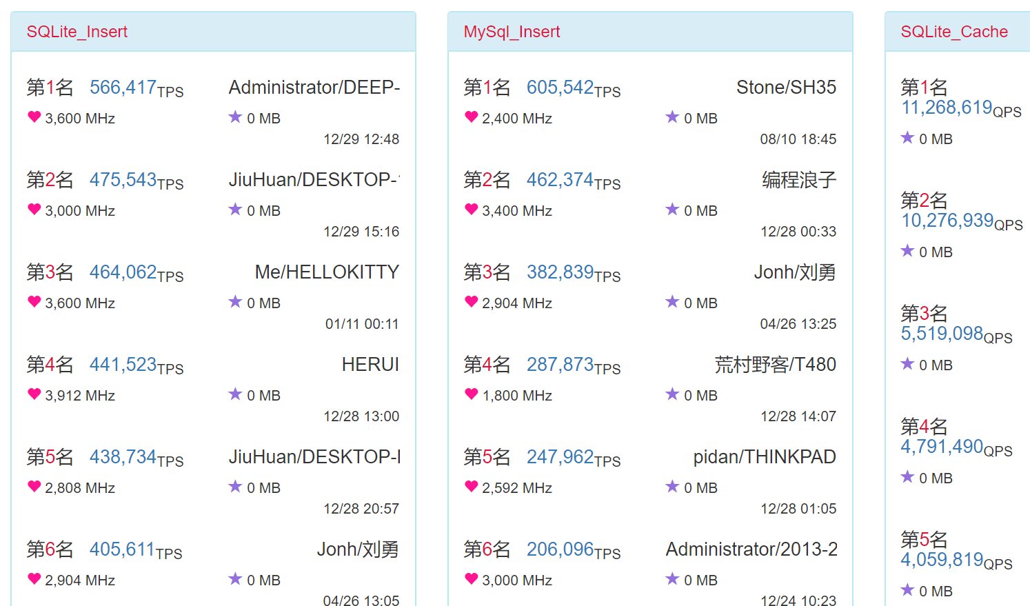 这是上百人用了各种机器(笔记本、台式机、服务器)调整参数进行大量测试后得到的性能排行榜!