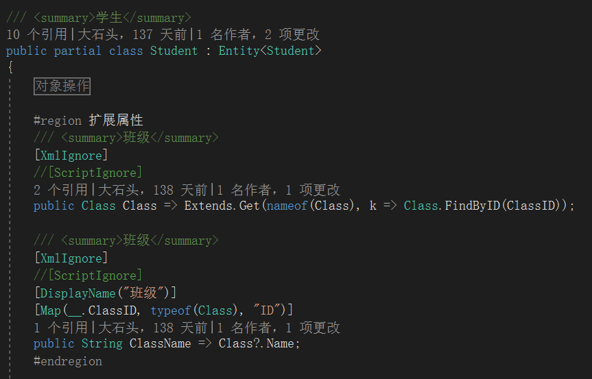 扩展属性先准备一个Class属性,再加一个ClassName,主要是为了方便某些场合使用 student.Class。