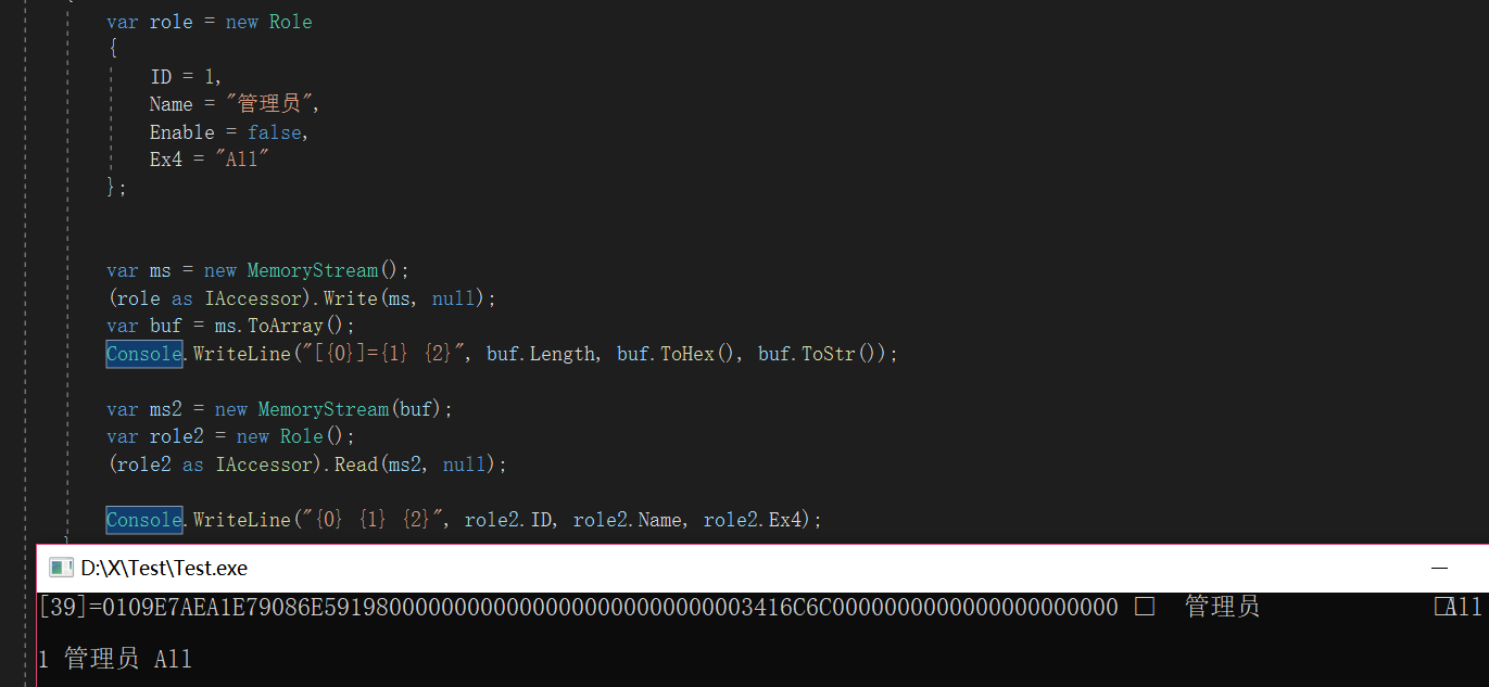 实体对象没有ToBinary之类的快速方法,而是需要先转化为IAccessor接口,然后Write序列化为数据流,或者Read读取数据流。