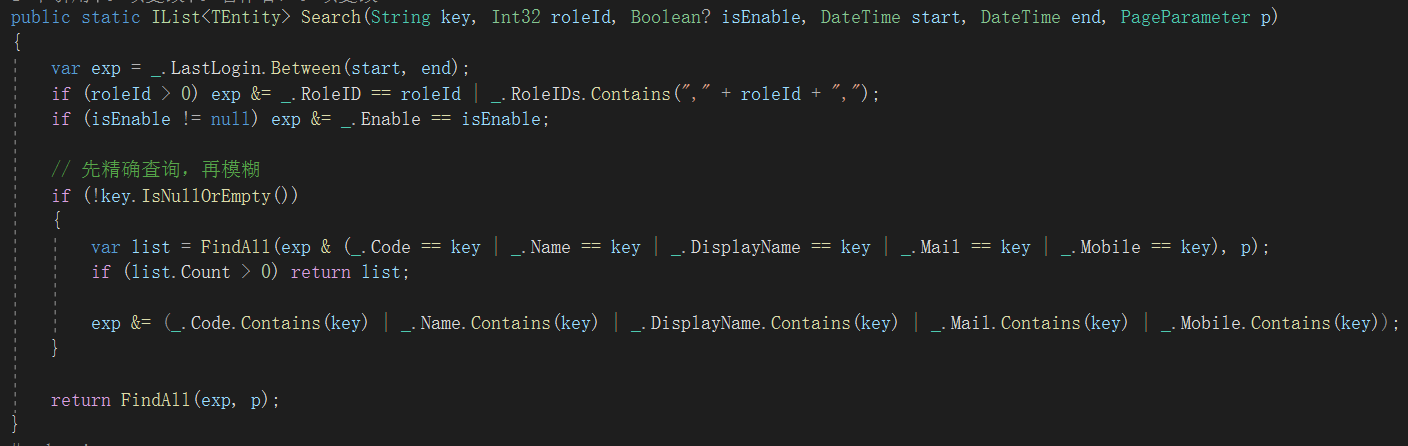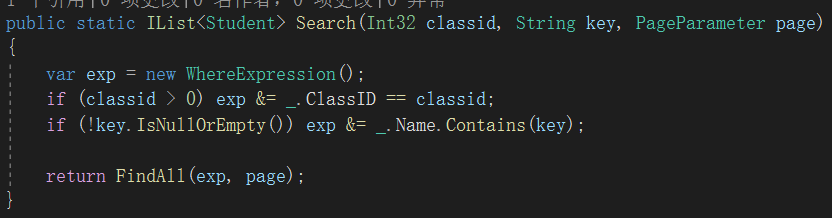 这里请出了条件表达式WhereExpression,实际上它只有两个功能,&表示And,|表示Or,根据表达式级别支持括号运算。
