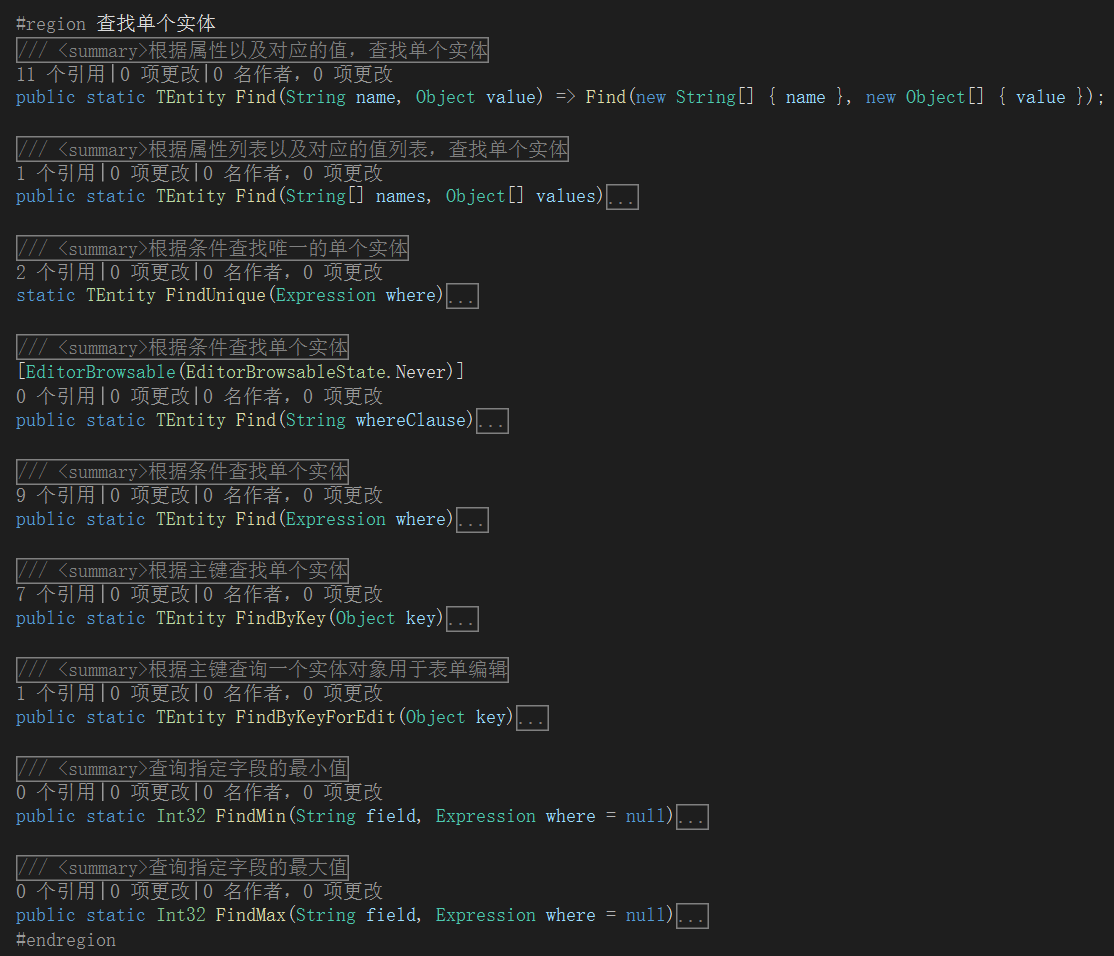 如上图,可知Entity实体基类内部,查询方法分为单对象查询的Find和对象列表的查询FindAll。